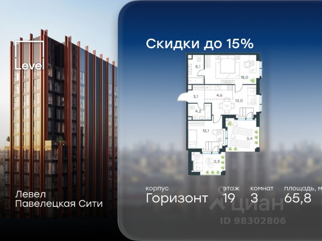 Цена указана с учётом скидки при 100%-й оплате, несубсидированной ипотеке, рассрочке (кроме программы "Рассрочка 0%"). В Даниловском районе столицы (ЮАО) продаётся 3-комнатная квартира площадью 59.50 кв.м без отделки. Квартира расположена на 14 этаже 20-этажного корпуса 'Горизонт' в жилом комплексе бизнес-класса Левел Павелецкая Сити. Высота потолков 3.00м. Престижная локация Левел Павелецкая Сити - это жилой комплекс бизнес-класса, расположенный в престижном Даниловском районе Москвы - историческом центре города в окружении парков, Москвы-реки и новейшей инфраструктуры. В 20 минутах пешком есть 3 станции метро, а в 5 минутах езды на авто - ТТК и Садовое кольцо. - 15 мин. пешком до метро "Павелецкая"; - 20 мин. пешком до станций "Тульская" и "Серпуховская"; - 8 мин. на авто до Кремля; - 10 мин. на авто до парка Горького и парка "Зарядье"; - 20 мин. на авто до башен "Москва-Сити". Авторская архитектура Авторская архитектурная концепция разработана бюро СПИЧ. Облик корпусов I и II очередей отсылает к стилистике архитектуры классического Нью-Йорка и золотой эпохи Голливуда. Корпуса IV очереди вдохновлены эстетикой ар-деко. Умное линейное расположение корпусов гарантирует потрясающие виды на исторический центр и Москву-реку из большинства квартир. Дизайнерские лобби Изысканные интерьеры лобби жилого комплекса отсылают к классическим фильмам золотой эпохи Голливуда. Классика в жилом комплексе Левел Павелецкая Сити - не имитация, а современное осмысление лучшего в этом стиле. В каждом вестибюле оборудованы стойки ресепшен, комфортные зоны ожидания, гостевые санузлы, мойки для лап животных, колясочные. В корпусах по 3-4 лифта с прямым доступом в паркинг. Площадь лобби - от 47,9 до 114,9 кв. м, высота потолков - до 5,46 м. Благоустройство и инфраструктура Для создания благоустройства было приглашено 2 ведущих бюро - ADM и GAFA. Разноуровневое пространство вмещает в себя игровые площадки для детей всех возрастов, тропы здоровья для пеших прогулок, крытые аллеи с качелями, места для работы на свежем воздухе, многофункциональные спортивные площадки - воркаут-зоны, столы для пинг-понга, зоны командных игр. Общая площадь закрытого двора - 4,63 га. Комфорт - это когда рядом всё, что нужно для жизни. В жилом комплексе Левел Павелецкая Сити размещены 85 коммерческих помещений, где откроются супермаркеты, кафе, аптеки и многое другое. В составе проекта также предусмотрены собственный фитнес-клуб, развивающий центр Letovo Kids, школа на 720 мест и детский сад на 175 мест. Технологии и безопасность - Wi-Fi в лобби и на придомовой территории; - Автоматизированная система контроля и учета ресурсов; - Круглосуточное видеонаблюдение и охрана; - Круглосуточная связь с охраной через приложение, телефон или кол-центр; - Контроль доступа по биометрической системе Face-ID; - Усиленный сотовый сигнал в лифтах и паркинге; - Распознавание номеров автомобилей при въезде/выезде в/из паркинга.