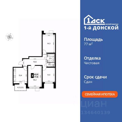Купить 3-комнатную квартиру рядом со школой рядом с метро Зябликово