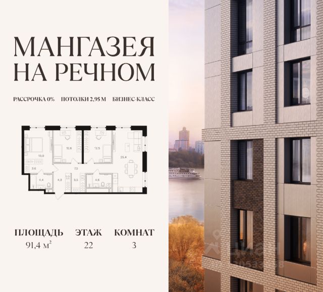 В продаже 3-к квартира площадью 91.4 м2. Функциональная планировка, кухня-гостиная, просторные санузел и гардеробная. Квартира расположена на 10-м этаже 24-этажного дома. Условия покупки: - Семейная ипотека от 3,5% на весь срок - Ипотека 0,11% на первый год - Рассрочка без процентов - Trade-in с проживанием на время строительства дома "Мангазея на Речном" расположена рядом с набережной, парками и территорией Северного речного вокзала. Первая очередь проекта два дома 12 и 24 этажа с приватным двором, ландшафтным благоустройством и инфраструктурой только для резидентов: кинозал, коворкинг, переговорные, зоны отдыха и комнаты для занятия фитнесом. Инфраструктура: - Школа на 1000 мест и детский сад - Дом Wellness со СПА-центром, фитнесом и массажными кабинетами и два бассейна, один из них под открытым небом - Два бассейна, один из них под открытым небом - Прогулочная набережная протяженностью 3,2 км с террасами - Зона воркаута и детские площадки - Ретейл, кафе, рестораны и бутики на первых этажах - Причалы для остановки яхт и небольших катеров Транспортная доступность: - 10 минут пешком до м. Речной вокзал - 15 минут пешком до м. Беломорская - 15 минут на машине до Белорусского вокзала - 17 минут на машине до Садового Кольца В первых корпусах "Мангазеи на Речном" представлены квартиры бизнес-класса с мастер-спальнями, террасами и видами на парк. Эксклюзивные форматы лоты с увеличенной высотой потолков и собственными выходом на благоустроенную территорию.
