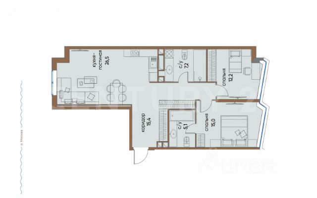 ЭКСКЛЮЗИВ АГЕНТСТВА PEOPLE Квартал введен в эксплуатацию, новый собственник получит ключи в ближайшее время. В жилом комплексе "Остров" -4 от Донстрой, расположенном в живописной Мнёвниковской пойме на западе Москвы, к продаже предлагается просторная и очень светлая квартира БЕЗ ОТДЕЛКИ. Общая площадь квартиры составляет 83,6 кв.м, что позволит Вам реализовать свои дизайнерские мечты и создать идеальное пространство для жизни. Высота потолков 3,25 метра. ФУНКЦИОНАЛЬНАЯ ПЛАНИРОВКА: - кухня-гостиная -2 спальни -2 су -2 гардеробные комнаты Квартира расположена в корпусе у реки, что обеспечивает прямой выход на набережную. Уникальная планировка квартиры включает мастер-спальню с собственным санузлом и окном в нем, откуда открывается живописный ВИД на реку, Сити и ландшафтный двор. Благодаря 5 окнам, одно из которых закругленное и занимает всю спальню, квартира наполнена светом. УСЛОВИЯ СДЕЛКИ: - Один взрослый участник долевого строительства - Быстрый выход на сделку О КОМПЛЕКСЕ: Жилой комплекс Остров от Донстрой расположен на западе Москвы в Мневниковской пойме, предлагая уникальное сочетание городской жизни и природного окружения. Обособленность комплекса рекой и природным парком, площадью 650 га обеспечивает высокий экологический рейтинг и создает атмосферу уединения. ИНФРАСТРУКТУРА: Остров располагает собственной инфраструктурой для полноценной жизни: школы, детские сады, фитнес-центр, медицинские учреждения, Торговын центры. Также два велопешеходных моста, ведущих к Гребному каналу и Филевскому парку и благоустроенная набережная вдоль Москвы-реки. СПОРТИВНЫЕ ОБЪЕКТЫ: На территории острова, в стороне от жилых корпусов ,возводится крупнейший в Москве спорткластер с ледовым дворцом, академией хоккея А. Овечкина, центр фигурного катания Т. Навки, крытым серфинг парком, глубоким бассейном для дайвинга, центром керлинга , футбольной школой, а также музыкальная школа и продюсерский центр Игоря Матвиенко. РАСПОЛОЖЕНИЕ: Станция метро Терехово бирюзовой ветки метро находится в 8 минутах пешей доступности. До Москва-Сити и ТТК 10 минут на автомобиле, до Садового кольца - 15 минут на автомобиле. 10-минутная пешая прогулка приведет в парк Фили или к Гребному каналу. Удобный выезд из ЖК в сторону Карамышевской набережной и Кутузовского проспекта. ID: 788524