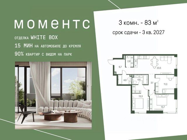 Продается просторная квартира площадью 150.00 м2 в жилом комплексе РЕКА. Квартира находится во 2 секции корпуса 3 (будет введен в эксплуатацию в 4 кв. 2026). Этаж 9-й из 12. В квартире продуманная функциональная планировка с просторной кухней 34.50 м2. Жилая площадь 57.20 м2. Высота потолка от 3,65 м. Изолированные комнаты, 4 санузла(1 раздельный и 3 совмещенных). Окна на противоположные стороны. Виды на природный парк и реку. РЕКА - клубный дом от Донстрой на западе Москвы, у границы природного заповедника "Долина реки Сетунь", по соседству с МГУ и МГИМО, дипломатическими представительствами зарубежных стран. В 5 минутах ходьбы находится станция метро "Мичуринский проспект", от которой до центра можно доехать за 15 минут. Также 15 минут понадобится, чтобы добраться на автомобиле до Садового кольца. Прямо из дома можно попасть в природную часть грандиозного парка "Событие". Здесь созданы детские игровые площадки "Луг" и "Лес", большая воркаут-зона, поле для командных видов спорта, площадка для пикников, смотровые площадки с великолепными видами, летний амфитеатр для лекториев и летняя школа. Архитектурный проект дома выполнен в стиле современной классики: фасады с облицовкой из натурального камня и металлическими декоративными элементами. В доме представлены элитные клубные резиденции. Одна из секций целиком состоит из квартир с финишной авторской отделкой: дизайнерские интерьеры, итальянские кухни, премиальная бытовая техника и сантехника. В наличии имеются пентхаусы с террасами и каминами. В непосредственной близости от дома предусмотрены школы, детские сады, магазины, фитнес-центры, кафе и рестораны, медицинские центры - все, что необходимо для жизни. Закрытый двор без машин обеспечен круглосуточной охраной и системами контроля доступа. Двор создан как ландшафтное продолжение окружающих природных парков и зонирован для различных видов отдыха, детских игр, занятий спортом. Работает шоурум. Позвоните и запишитесь на показ квартиры.