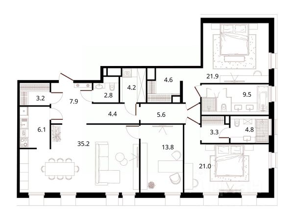 Кухня:* Siematic - премиальная функциональная система с продуманной геометрией линий.