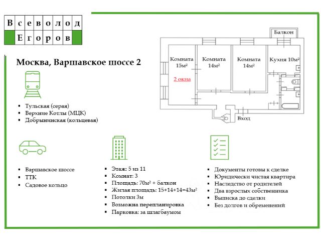 Замечательные евро 3х комнатные апартаменты с функциональной планировкой на набережной в центровой локации Москвы. Апартаменты находятся в новом комплексе бизнес-класса в едином кластере с Даниловский мануфактурой, которая представляет собой реконструированное историческое Лофт-пространство с офисами крупных компаний (Сбертех, Рамблер и т.д.), медицинскими центрами, различными магазинами, кофейнями и ресторанами. Из комплекса удобные выезды и заезды на набережную, Варшавское шоссе и 3-е кольцо. До метро Тульская можно дойти за 15-20 минут спокойным шагом или доехать на трамвае одну-две остановки. До МЦК Верхние Котлы 10-13 минут пешком (до Сити 13 минут на мцк). Также до Парка Горького, Нескучного Сада или Чистых прудов несколько трамвайных остановок на современных трамваях с кондиционерами. Из окон открывается приятный вид на красивый двор и реку. Для вашей комфортной жизни в ЖК продуманы — закрытая красивая территория с зонами отдыха, столами для работы, консьерж сервис и круглосуточная охрана, видеонаблюдение, подземный паркинг, стильное лобби, отдельные комнаты для велосипедов и колясок, лифты Otis, зоны для мастер классов и работы. Есть возможность приобрести отдельную кладовую комнату. Квартира полностью укомплектована, установлена техника. Установлены система умный дом и скоростной интернет. Кухня оборудована встроенной бытовой техникой, в наличии духовой шкаф, свч, индукционная варочная панель, вытяжка, посудомоечная машины и холодильник, стиральная машина. Совмещенный просторный санузел оборудован немецкой сантехникой Grohe, раковина и плитка - Kerama Marazzi. Прекрасная возможность сразу начать жить в полностью обустроенном пространстве! Вся мебель и техника, представленные в апартаментах, остаются новым владельцам. Один взрослый собственник. Продам 3-комнатную квартиру вторичка станция Верхние котлы (МЦК).