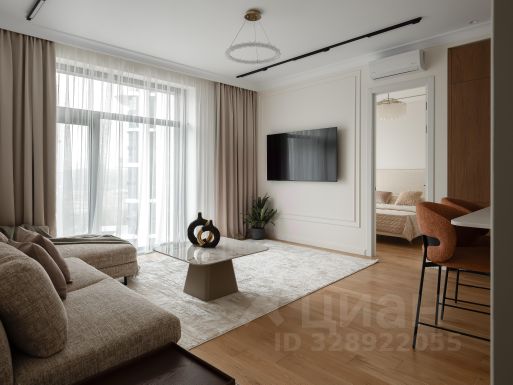 Планировкой квартиры предусмотрено: просторная кухня-гостиная с видом во двор, две спальни, два санузла, много мест для хранения, холл. Из гостинной открывается прекрасный вид во двор и на реку! Квартира полностью готова к проживанию, есть дизайн проект доукомплектации квартиры хранением и мебелью, мебель сейчас уже находится в производстве!