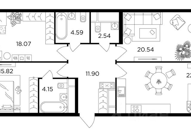 Погрузитесь в роскошь просторной 3-комнатной квартиры в доме бизнес-класса! Кухня-гостиная 27 м², мастер-спальня с ванной комнатой и гардеробной, детская/кабинет, санузел с душевой и постирочным блоком, гардеробная.