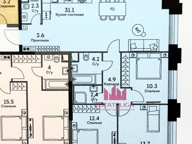 В жилом комплексе EVER предлагается трехкомнатная квартира без отделки, позволяя новым владельцам самостоятельно выбрать стиль интерьера и дизайн-проект в зависимости от личных предпочтений и бюджета. Фасад здания соответствует современным строительным стандартам, обеспечивает звукоизоляцию и энергоэффективность. Окна квартиры выходят на МГУ и городскую панораму. Планировка квартиры предусматривает - Просторная гостиная объединена с кухней, обеспечивая удобство пространства для семейных ужинов и приема гостей. - Спальная зона оборудована двумя отдельными помещениями, изолированными от основной части квартиры, создавая комфортные условия для отдыха. - Наличие функциональной гардеробной позволяет рационально организовать хранение вещей. - Две ванные комнаты оснащены необходимыми инженерными коммуникациями. Квартира идеально подойдет покупателям, предпочитающим свободное пространство для творчества и желающих создать уникальный интерьер согласно собственным предпочтениям и потребностям семьи. В престижном районе Обручева, всего в 7 минутах неспешной прогулки от станции метро Калужская, расположился жилой комплекс EVER - место, в котором можно обрести столько уединения, сколько не снилось и буддийским отшельникам. Дизайнеры EVER спроектировали природный двор, разбитый на несколько обособленных, уединенных площадок. Их созерцательные пейзажи, многообразие натуральных текстур и богатая растительная палитра на время перенесут вас прочь из Москвы — туда, где легко почерпнуть новую энергию для ежедневных свершений У башен узнаваемые фамильные черты — визуальное деление на три яруса, кирпичные фасады, одинаковая высота и сечение, но при этом каждая из них обладает индивидуальным характером, пластикой фасадов, деталями и собственной цветовой схемой. Просторные двухуровневые входные группы с высокими потолками, колясочные и зоны ожидания у каждого из входов. Дизайнеры бюро HAAST создали интерьер лаунж-зоны, вдохновившись природой. Специально подобранные материалы с натуральной текстурой камня и латуни, зелень керамогранита на стенах, роскошная меблировка и картины с флористическими мотивами или наоборот абстракции с буйством сочных красок тонко сочетаются между собой, которые освещаются причудливыми медными светильниками, наполняя пространство домашним уютом. Миссия EVER — наполнять жизнью и энергией. Архитектура комплекса, сочетающая современные урбанистические решения с естественной красотой, создает атмосферу умиротворенности и самодостаточности. Здесь, в окружении всего своего, можно легко отключиться от внешнего мира и насладиться тишиной, уединением и общением с близкими. EVER — это не просто жилье, это образ жизни, наполненный комфортом, уютом и гармонией.