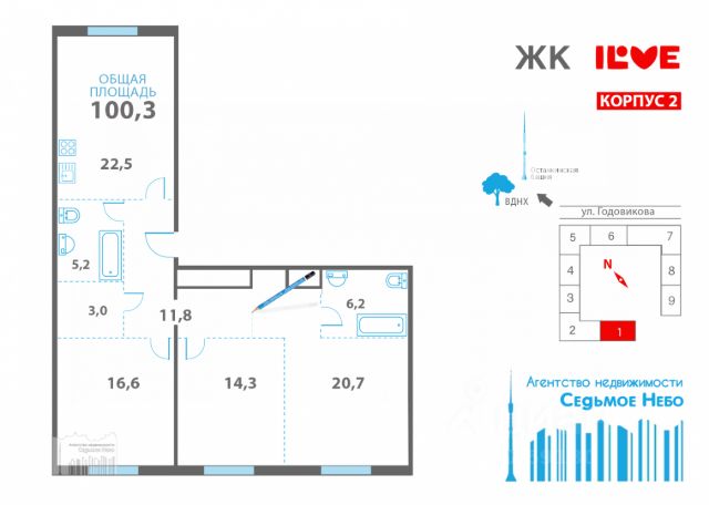 ID: 584438 ЭКСКЛЮЗИВ BARNES Просторная 3-комнатная квартира площадью 72.1 кв.м. с панорамными окнами в первом корпусе жилого комплекса iLove. В квартире выполнена предчистовая отделка Whitebox. Функциональное планировочное решение: просторная гостиная с зоной кухни, 2 спальни, 2 санузла, прихожая. Панорамные окна. Высокие потолки 3.2 м. Комплекс iLove семейный жилой квартал с концепцией безопасного и комфортного "города в городе". Благоустроенная территория с детскими площадками и зонами отдыха. Видеонаблюдение на всей территории комплекса. Предусмотрен 2-уровневый подземный паркинг. Развитая инфраструктура на территории комплекса и поблизости: супермаркеты (ВкусВилл, Магнолия и др.), рынок фермерских продуктов, детские сады и школы (1531, 1518 и др.), медцентры и поликлиники (12, 3), фитнес-клубы, рестораны, кафе, кинотеатры, музеи и многое другое. Рядом расположены ВДНХ, парк Дубовая роща, Парк Останкино, Ботанический сад. Отличная транспортная доступность: до станции метро Алексеевская 12 минут пешком (Яндекс Карты); 6 минут до выезда на ТТК. Все для комфортной жизни в большом городе! Быстрый выход на сделку, свободная продажа, один собственник. Участник ассоциации AREA. Номер объекта: #1/584438/14501