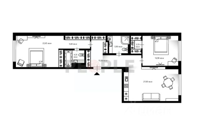 Планировочное решение:: кухня с обеденной зоной и гостиной, мастер-спальня со своим санузлом и гардеробной комнатой, изолированная комната, гардероб, гостевой санузел с душевой и постирочной