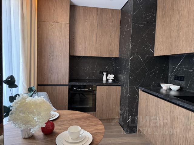 Квартира оборудована всей необходимой встроенной бытовой техникой: стиральная машина, телевизор, варочная панель, вытяжка, духовой шкаф, микроволновая печь, холодильник.