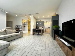 Функциональная планировка: входной коридор с системой хранения вещей, просторная кухня-гостиная с выделенной зоной отдыха, вместительная гардеробная, большой совмещенный санузел. В квартире две изолированные комнаты. Спальня с удобной кроватью с подъемным механизмом и ортопедическим матрасом, там же большой, вместительный шкаф для вещей. Вторая детская комната, полностью меблирована, но по желанию в ней можно устроить гостевую комнату или рабочий кабинет.