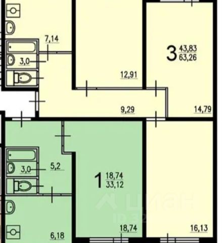 • ✓ В базе Циан 1 3-комнатных квартир.