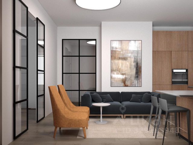 Планировка: просторная гостиная 15 м², совмещенная с кухней 6 м², две изолированные спальни по 10 м². Застеклённый балкон, совмещённый санузел.
