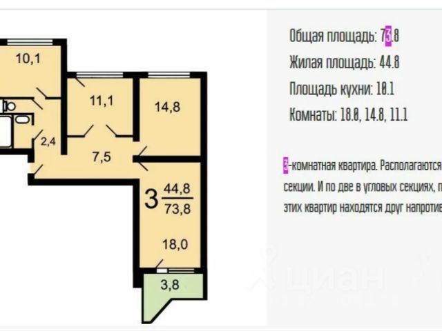 • ✓ В базе Циан 79 3-комнатных квартир.