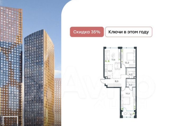 • ✓ В базе Циан 17 3-комнатных квартир.