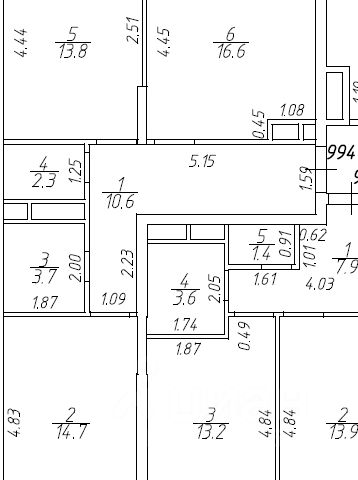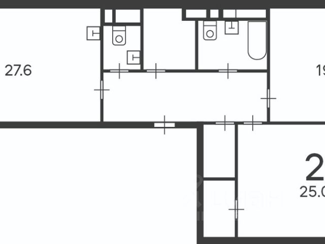 3-х комнатная квартира, без отделки, без стен, с высокими потолками.