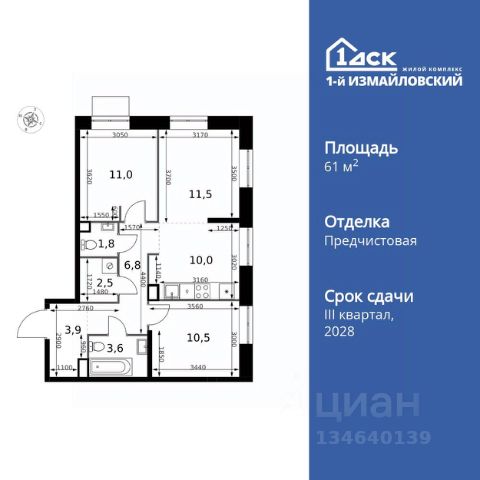 Прямая продажа от застройщика! Жилой Комплекс Комфорт класса. Продаётся 3-к квартира номер 494 общей площадью 60.7 кв.м. на 6-м этаже 32 этажного здания. Без отделки. Особенности квартиры: - Угловая планировка - больше пространства для ваших идей. - Увеличенное количество окон - дополнительное освещение и свежий воздух. - Гостевой санузел - комфорт и удобство для ваших гостей. - Постирочная - организуйте пространство для стирки и сушки вещей. - Евроформат - просторное и удобное жилье с отличной планировкой. - Место для игры/занятия спортом - идеальное пространство для активных детей. - Линейная кухня - функциональность и практичность в одном решении. - Возможность добавить спальное место - дополнительный комфорт для гостей. - Ниша под шкаф - компактное и удобное место для вещей. Информация о комплексе: Современный архитектурный проект "1-й Измайловский" - идеальное место для проживания, расположенное в восточной части Москвы в окружении 14 000 гектаров леса. Комплекс пронизан атмосферой здорового образа жизни и благополучия. Сиреневый сад и близлежащие лесопарки - это места, где можно насладиться лыжными прогулками зимой и тонизирующими пробежками летом. Расположенный между Щелковским шоссе и Амурской улицей, "1-й Измайловский" осмысляет себя не столько через близость к городским точкам притяжения, сколько через соседство с зелеными пространствами и спортивными объектами. Он отгорожен от шоссе застройкой первой линии и собственными садами здоровья. В его окнах - изумрудное море парка "Лосиный остров" и густые кроны окрестных дворов. В его графике - занятия спортом и прогулки в Измайлове. Транспортная доступность: Не более 2,5 км до станций метро "Щёлковская" и "Черкизовская" и МЦК "Локомотив". Щёлковское шоссе соединяет квартал с Северо-восточной хордой и МКАД, Центральным автовокзалом и Восточным железнодорожным вокзалом. Две автобусные остановки в паре минут ходьбы и 11 маршрутов общественного транспорта. На автомобиле 3 минуты до СВХ 12 минут до ТТК 15 минут до Садового кольца Внутренняя инфраструктура: Комплекс находится в исторически сложившемся районе Москвы с хорошим качеством и плотностью инфраструктуры. Торговые центры и сетевые магазины -6 детских садов, включая собственный детский сад на 125 мест -3 школы, включая собственную школу -Поликлиники и медицинские центры -Парки и зоны отдыха Расположение архитектурного проекта создает все условия для тех, кто стремится к здоровому образу жизни и для тех, кто уже сделал выбор в его пользу. В ближайшем окружении расположены несколько стадионов и множество спортивных объектов для занятий спортом на любой вкус: от всеми любимого футбола, баскетбола и до конного спорта. В окружении проекта более 30 километров организованных беговых и велодорожек.