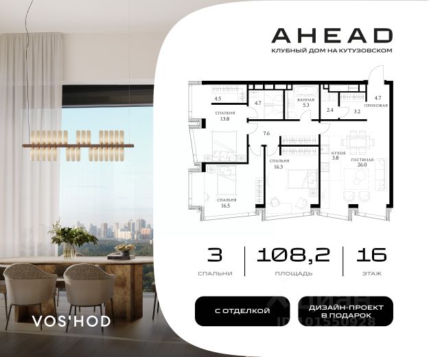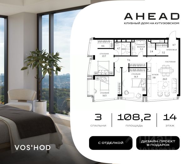 Успейте приобрести по выгодным условиям! Ahead это эксклюзивный проект в центре столицы, включающий всего 77 резиденций, что гарантирует приватность и комфорт для жильцов. Комплекс отличается авторской архитектурой от бюро "Цимайло Ляшенко и Партнёры", а из окон открываются панорамные виды на Парк Победы, Воробьёвы горы и Москва-Сити. Внутреннее пространство оформлено с особым вниманием к деталям: лобби создано студией UNK Interiors, а двор благоустроен в японском стиле с 58-метровым водопадом высотой 4,5 м и сосной "ниваки". Все резиденции предлагаются с отделкой White Box. При покупке ряда апартаментов владелец получает в качестве бонуса готовый дизайн-проект с рабочей документацией от известной студии дизайна BALCON, что в разы ускорит и упростит процесс превращения "белого листа" в продуманное и комфортное пространство для жизни. Для удобства жильцов на седьмом этаже расположен клубный этаж Sky Lobby, включающий Sky Social Club с панорамной террасой, фитнес-зону Air Fitness с кардиозоной и залом для йоги и пилатеса, а также коворкинг-трансформер с отдельной переговорной. В комплексе предусмотрен современный подземный паркинг с биометрическим контролем доступа, распознаванием госномеров и возможностью установки зарядок для электрокаров. На всей территории действует Wi-Fi. Расположение комплекса обеспечивает отличную транспортную доступность: до Москва-Сити и Киевского вокзала можно добраться за 10 минут на автомобиле, до инновационного центра Сколково — за 15 минут. Комплекс оснащён современными технологиями и системами безопасности, включая биометрический доступ по Face ID, умную систему управления домом, приточно-вытяжную вентиляцию, центральное кондиционирование и круглосуточный мониторинг. AHEAD — это пространство для комфортной жизни в сердце Москвы, где каждая деталь создана для благополучия жильцов.
