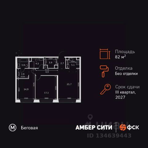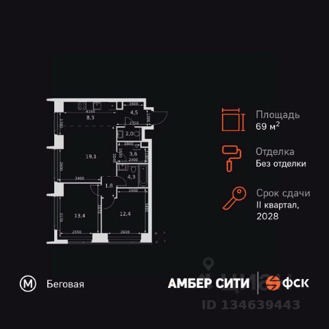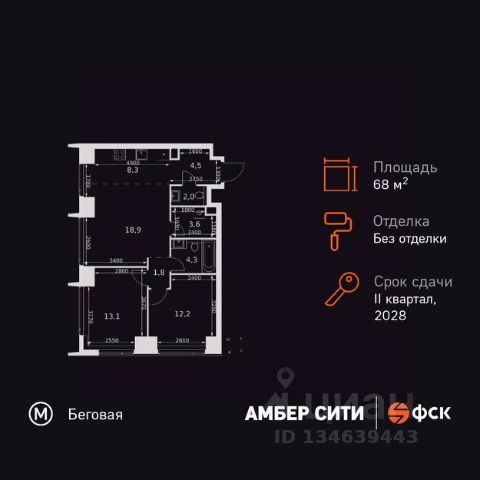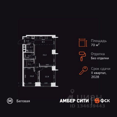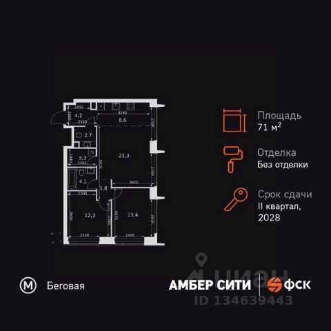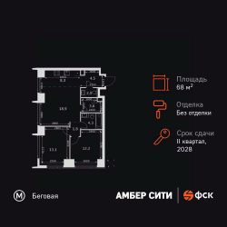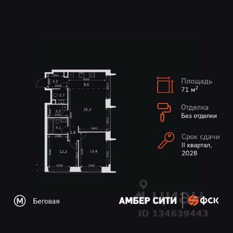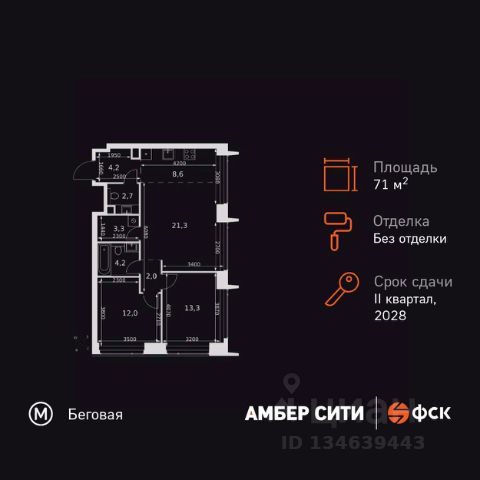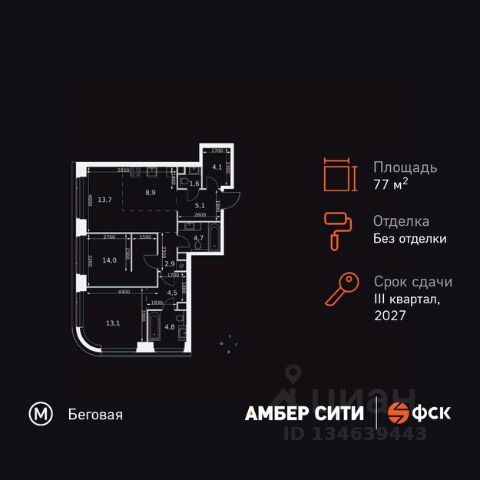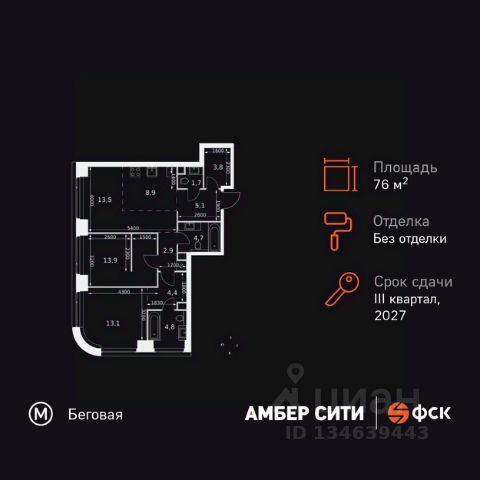 Прямая продажа от застройщика! Успейте забронировать квартиру до повышения стоимости! Жилой Комплекс премиум-класса. Продаётся 3-к квартира номер 8 общей площадью 76.8 кв.м. на 2-м этаже 46 этажного здания. Без отделки. Цена с учётом скидки. Особенности квартиры: - Организуем показ в удобное для вас время! - Мастер-зона с санузлом и гардеробной. Всё для вашего комфорта и удобства, включая личный санузел и гардероб. - Просторная спальня, в которой можно разместить большую кровать. - Угловая планировка - больше пространства для ваших идей. - Увеличенная ширина окна/окон - больше света и визуального простора. - Увеличенное количество окон - дополнительное освещение и свежий воздух. - Нестандартное окно - особенный акцент в вашем интерьере. - Гостевой санузел - комфорт и удобство для ваших гостей. - Ниша под стиральную машину - удобство и экономия пространства. - Евроформат - просторное и удобное жилье с отличной планировкой. - Гибкая планировка - создайте пространство по своему вкусу. - Место для игры/занятия спортом - идеальное пространство для активных детей. - Можно оборудовать рабочее место - комфорт для работы и учёбы. - Линейная кухня - функциональность и практичность в одном решении. - Возможность добавить спальное место - дополнительный комфорт для гостей. - Гардеробная - удобство для хранения и организации вещей. - Ниша под шкаф - компактное и удобное место для вещей. Квартира без отделки. Чистый холст для воплощения интерьера вашей мечты. Информация о комплексе: ЖК "Амбер Сити" - вдохновляющий квартал у Москва-Сити с архитектурой мирового уровня. Здесь кипит жизнь 24/7: парки, инфраструктура и виды на центр без городской суеты. Самодостаточная среда для работы, творчества и семьи в духе лучших районов Нью-Йорка и Гонконга. Транспортная доступность: Квартал с исключительной транспортной доступностью: ключевые точки Москвы в 15-20 минутах. Полное погружение в деловую и культурную жизнь столицы с минимальными затратами времени на дорогу. Общественный транспорт: - Метро "Беговая" - 5 минут пешком - Остановка "2-й Хорошёвский проезд" - 3 минуты пешком - Метро "Звенигородская" (строящаяся) - 10 минут пешком На автомобиле: - Москва-Сити - 10 минут - Звенигородское шоссе - 3 минуты - ТТК - 5 минут - Серебряный бор - 8 минут - Садовое кольцо - 12 минут - Кремль - 20 минут - Шереметьево - 40 минут Внутренняя инфраструктура: ЖК "Амбер Сити": многоуровневый ландшафт на 6 гектарах с зелёным бульваром, объединяющим арт-объекты, водные зоны и архитектурные формы. В закрытых дворах на стилобате - детские площадки с сенсорными элементами, зоны отдыха с креслами и настилами для йоги. Навесы с подогревом и зарядками для зимнего сезона. Активности на любой вкус: настольный теннис, петанк, чтение в тишине на оборудованных скамейках. Продуманное пространство для ежедневного отдыха и игр детей и взрослых.