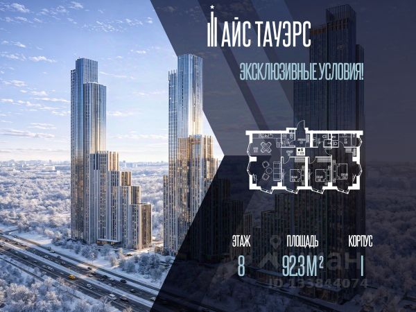 ЖК Айс Тауэрс — жилой комплекс премиум-класса, расположенный в престижном районе Западного административного округа Москвы. Современная архитектура и панорамное остекление формируют динамичный облик комплекса, открывая впечатляющие виды на город и природные территории. Придомовая территория продумана до мелочей: приватные дворы с детскими площадками, воркаут-зоны, места для отдыха и прогулок. Зеленые пространства сохраняют уединённость и создают ощущение жизни в собственном парке. Прямой доступ к особо охраняемой природной зоне делает повседневные прогулки особенно комфортными. ЖК Айс Тауэрс предлагает развитую инфраструктуру и высокий уровень сервиса, которые обеспечивают комфорт на каждом этапе жизни. На территории ЖК есть фитнес-зал, бассейн, термальный комплекс и просторный комьюнити-центр.. В нём оборудованы приватные кабинеты, куда можно пригласить личного массажиста или стилиста, универсальные залы для тренировок, коворкинг-гостиная и тихая библиотека. Также есть детская игровая комната, пространство для мастер-классов и встреч. Особое внимание уделено сервису: круглосуточная консьерж-служба, valet-сервис, беллмены, внутренняя доставка и электронные почтовые ящики. Пространства хранения для велосипедов и колясок, душевые для домашних животных и услуги груминга делают повседневную жизнь удобной и продуманной до мелочей. Все процессы легко контролируются через мобильное приложение: от вызова служб до записи на занятия или услуги. Опционально возможна отделка white box. Комплекс оснащён современными инженерными системами: "умный дом", видеонаблюдение, системы очистки воздуха и бризеры обеспечивают максимальный комфорт и безопасность. ЖК Айс Тауэрс — это закрытое сообщество, где забота о времени и качестве жизни становится стандартом.