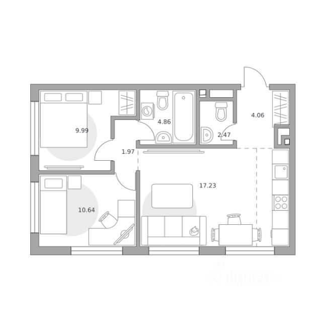 Продаётся 3-комнатная квартира 342, площадью 59,92 м², на 10 этаже в ЖК "Beluck Коломенское" корпус 1. Стоимость — от 23817123 руб. Квартира white box, планировка односторонняя, окна во двор.