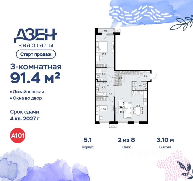 Продается трехкомнатная квартира 192 в новостройке ЖК "Дзен-кварталы" по адресу Москва, ТиНАО, Новомосковский АО, Сосенское С/П, ул. Александры Монаховой, корп. 5.2. Общая площадь квартиры - 80.00 кв. м., этаж 6 из 21, секция 5. Тип проекта, по которому построен дом - монолит, компания-застройщик - ООО "А101". Стоимость квартиры - 21616000 Р. Срок сдачи - 4 квартал 2027. ПРЕДЛОЖЕНИЯ ОТ ЗАСТРОЙЩИКА В НОЯБРЕ 2025: Ипотека от 13,9 % для всех! На весь срок. "Семейная ипотека" вернулась. Ставка от 3,5 % на весь срок! Без удорожания! Выгодное ипотечное комбо: Ипотека от 2200 р./мес. и от 6 % после рождения ребёнка! Ипотека для всех "Держи пять!" - ставка 5 % на 2 года! *более подробную информацию по скидкам и акциям уточняйте в отделе продаж ЖК "Дзен-кварталы" на юго-западе Москвы расположен вдоль берегов Ивановского пруда и реки Варварки, гармонично сочетает насыщенную городскую инфраструктуру и мягкое умиротворение природы. Архитектурные решения домов стандарт-, комфорт- и бизнес-класса переменной этажности объединяют скандинавскую функциональность и утонченный японский минимализм. Район отличается высокой транспортной доступностью - всего 5 минут пешком до станций метро "Новомосковская" и "Потапово". Кварталы с собственной благоустроенной набережной, парками, тихими дворами без машин, зелёными скверами располагают к спокойному созерцательному отдыху. На первых этажах откроются магазины, спортивные залы, поликлиники, аптеки, кофейни, пекарни, фитнес-залы, салоны красоты. В районе появится собственная школа, расположенная у воды, и 2 детских сада. В декоре лобби использованы японские мотивы - отделка стен светлым деревом и натуральным камнем. На подземных этажах расположены паркинги и кладовые. Преимущества "Дзен-кварталов" - ст. метро "Новомосковская" и "Потапово" - 5 мин. пешком - удобный выезд на трассу Солнцево - Бутово - Варшавское шоссе - уникальное благоустройство в стиле Japandi - благоустроенная набережная - насыщенная инфраструктура