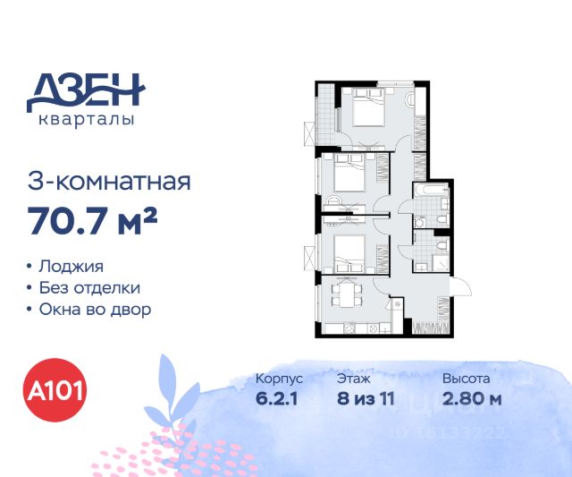 Продается трехкомнатная квартира 267 в новостройке ЖК "Дзен-кварталы" по адресу Москва, ТиНАО, Новомосковский АО, Сосенское С/П, Москва, Новомосковский административный округ, район Коммунарка, квартал 160, 1Вк3. Общая площадь квартиры - 70.30 кв. м., этаж 21 из 21, секция 4. Тип проекта, по которому построен дом - монолит, компания-застройщик - ООО "А101". Стоимость квартиры - 25239106 Р. Срок сдачи - 1 квартал 2026. ПРЕДЛОЖЕНИЯ ОТ ЗАСТРОЙЩИКА В МАРТЕ 2026: Ипотека от 13,9 % для всех! На весь срок. "Семейная ипотека" вернулась. Ставка от 3,5 % на весь срок! Без удорожания! Выгодное ипотечное комбо: Ипотека от 2200 р./мес. и от 6 % после рождения ребёнка! Ипотека для всех "Держи пять!" - ставка 5 % на 2 года! *более подробную информацию по скидкам и акциям уточняйте в отделе продаж ЖК "Дзен-кварталы" на юго-западе Москвы расположен вдоль берегов Ивановского пруда и реки Варварки, гармонично сочетает насыщенную городскую инфраструктуру и мягкое умиротворение природы. Архитектурные решения домов стандарт-, комфорт- и бизнес-класса переменной этажности объединяют скандинавскую функциональность и утонченный японский минимализм. Район отличается высокой транспортной доступностью - всего 5 минут пешком до станций метро "Новомосковская" и "Потапово". Кварталы с собственной благоустроенной набережной, парками, тихими дворами без машин, зелёными скверами располагают к спокойному созерцательному отдыху. На первых этажах откроются магазины, спортивные залы, поликлиники, аптеки, кофейни, пекарни, фитнес-залы, салоны красоты. В районе появится собственная школа, расположенная у воды, и 2 детских сада. В декоре лобби использованы японские мотивы - отделка стен светлым деревом и натуральным камнем. На подземных этажах расположены паркинги и кладовые. Преимущества "Дзен-кварталов" - ст. метро "Новомосковская" и "Потапово" - 5 мин. пешком - удобный выезд на трассу Солнцево - Бутово - Варшавское шоссе - уникальное благоустройство в стиле Japandi - благоустроенная набережная - насыщенная инфраструктура