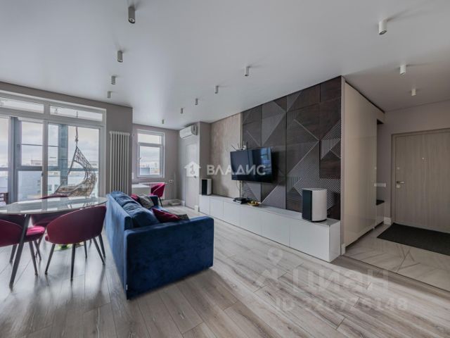 В продаже замечательная Евротрешка в ЖК "Город". Квартира распашного типа, торцевая, соседей по бокам нет. Окна на три стороны света. Отличная планировка: огромная кухня-гостиная площадью 30 кв.м., две смежные спальни 14 и 15 кв.м.(проходную комнату можно оборудовать в гардеробную или использовать как детскую), большой совмещенный санузел. Ремонт делали в 2023 году для себя. В отделке использовались качественные материалы. Встроенная кухня с техникой и мебель в отличном состоянии. В доме есть подземный паркинг, фитнес клуб, магазины, барбер шоп, салоны красоты. Рядом школа и детский сад. Метро в 5 минутах ходьбы. Рядом большой парк для прогулок. В собственности более 5 лет, полная стоимость в договоре, один взрослый собственник. Свободная продажа. 3-комнатная квартира 3-комнатных квартир в Город в Москве.