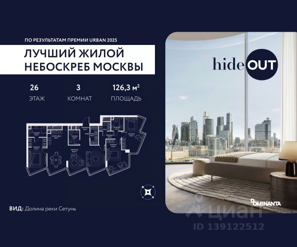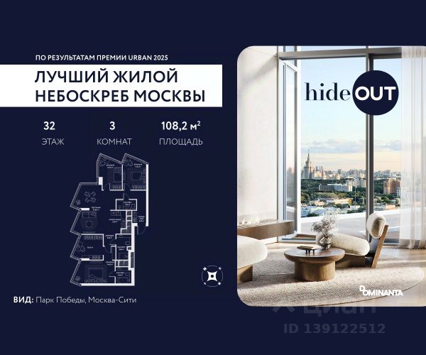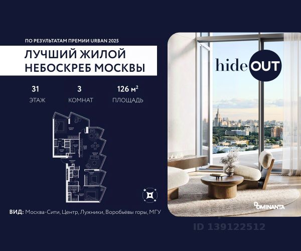 Прямая продажа от застройщика! Продается 3-комнатная квартира площадью 126 кв.м. на 32-м этаже 34-этажного дома в жилом комплексе ХАЙДАУТ с панорамными видами: Центр, Лужники, Воробьёвы горы, МГУ. Высота потолков 3,25 м. В проекте действуют привлекательные условия покупки: скидка до 15% при рассрочке 0% на 1,5 года или при оплате одним платежом (в том числе ипотека). Предложение действует до 31.03.2026. ХАЙДАУТ — премиальный проект компании Dominanta. Это новый уровень жизни и комфорта без компромиссов. Две башни — 34 и 49 этажей — открывают захватывающие виды на Москву. Архитектурной доминантой проекта становится мост, соединяющий башни на высоте 80 метров. Закрытая территория, охрана 24/7, зона экстренной безопасности на подземном уровне, система пожаротушения. На мосту между башнями на 22-м этаже находится общественное пространство SocialHUB — предусмотрено 16 комфортных пространств для работы, отдыха и развлечений с панорамными видами и клубным форматом доступа. Концепция благоустройства ХАЙДАУТ — баланс между природой и технологичным городом будущего. На территории сада предусмотрены 15 зон для отдыха, работы, спорта и детей. Знаковым местом станет центральная площадь с амфитеатром и водопадом — сочетание камней, растений и струящейся воды создает идеальный баланс с природой. Застройщик АО "СЗ "ХАЙДАУТ", ИНН 7729058636, ОГРН 1027739319420. Проектная декларация на сайте наш.дом.рф. Предложение не является публичной офертой.