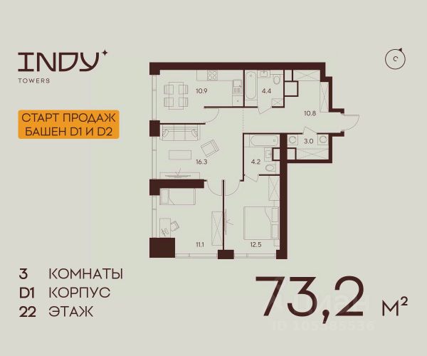 Продажа от застройщика. Продается просторная 3-комнатная квартира на 3 этаже жилого комплекса Indy Towers. Срок сдачи: 3 кв. 2029 г. Расположение: Комплекс расположен в Хорошевском районе Москвы, на улице Куусенина, в окружении почти 150 гектаров парков для прогулок и активного отдыха. Помимо этого, рядом с комплексом есть: - Детская международная академия тенниса - Ледовый спортивный комплекс ЦСКА - Футбольный стадион "ВЭБ-Арена" - Крупнейший в Европе торовый центр "Авиапарк" - Богатый выбор государственных и частных школ - 8 парков, окружающих комплекс Транспортная доступность: - 3 минут до метро Зорге - 2 минуты пешком до парка Березовая роща - 10 минут на машине до ТТК - 8 минут на машине до ТРЦ Авиапарк Внутренняя инфраструктура Indy Towers: - Кафе и продуктовые магазины - Тайский SPA - Фитнес зал - Комьюнити-зона - Детский клуб Аквилон KIDS - Детский сад Преимущества: - Технология энергоэффективности Termo-S, снижающая теплопотерю домов и позволяющую экономить на электроснабжении - Soundstop - технология дополнительной шумоизоляции на 39 дБ в квартирах с WhiteBox и чистовой отделкой - Система умного дома inHome 3.0 позволит контролировать коммунальные расходы, оплачивать счета и пользоваться услугами, не выходя из умного дома