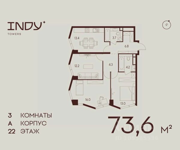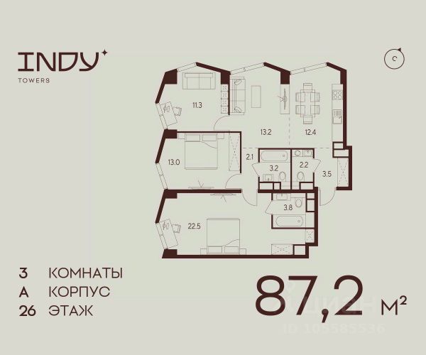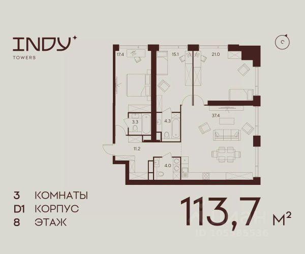 Продажа от застройщика. Продается просторная 3-комнатная квартира на 6 этаже жилого комплекса Indy Towers. Срок сдачи: 3 кв. 2029 г. Расположение: Комплекс расположен в Хорошевском районе Москвы, на улице Куусенина, в окружении почти 150 гектаров парков для прогулок и активного отдыха. Помимо этого, рядом с комплексом есть: - Детская международная академия тенниса - Ледовый спортивный комплекс ЦСКА - Футбольный стадион "ВЭБ-Арена" - Крупнейший в Европе торовый центр "Авиапарк" - Богатый выбор государственных и частных школ - 8 парков, окружающих комплекс Транспортная доступность: - 3 минут до метро Зорге - 2 минуты пешком до парка Березовая роща - 10 минут на машине до ТТК - 8 минут на машине до ТРЦ Авиапарк Внутренняя инфраструктура Indy Towers: - Кафе и продуктовые магазины - Тайский SPA - Фитнес зал - Комьюнити-зона - Детский клуб Аквилон KIDS - Детский сад Преимущества: - Технология энергоэффективности Termo-S, снижающая теплопотерю домов и позволяющую экономить на электроснабжении - Soundstop - технология дополнительной шумоизоляции на 39 дБ в квартирах с WhiteBox и чистовой отделкой - Система умного дома inHome 3.0 позволит контролировать коммунальные расходы, оплачивать счета и пользоваться услугами, не выходя из умного дома