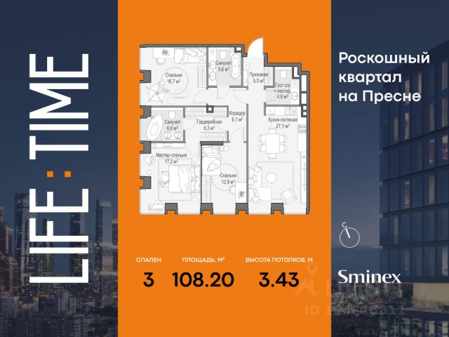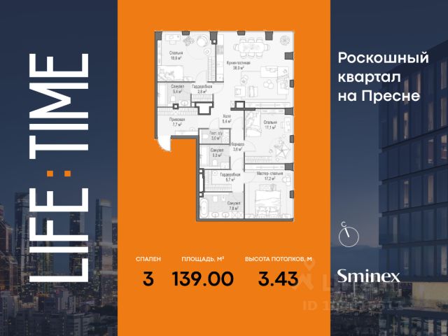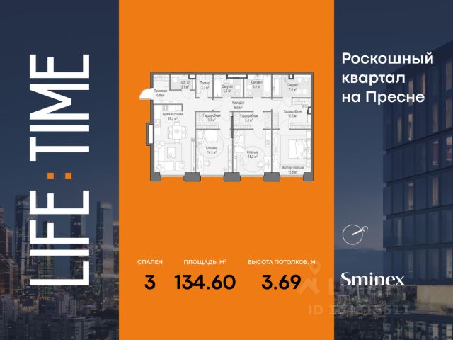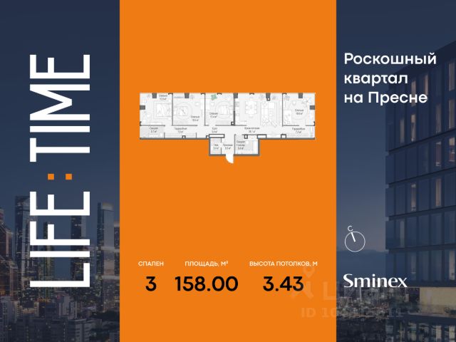 Life Time - роскошный современный квартал на Пресне, в наиболее быстро растущем премиальном районе ЦАО. Его насыщенная инфраструктура и выгодное расположение дарят время для жизни. Вы больше не тратите его на дорогу или ожидание, при этом ни в чём себе не отказывая. На территории предусмотрено всё для комфортной жизни: • двор-парк площадью 1,8 гектара с прудом и фонтанами; • Clubhouse - инфраструктурный центр в отдельном здании с исчерпывающими возможностями для спорта, отдыха и досуга только для жителей; • спортивная инфраструктура на улице и в помещении, в том числе бассейн длиной 25 метров, хот-таб, хаммам, сауна, бьюти-зона; • клубная гостиная с террасой; • всё для развития и досуга детей любого возраста, в том числе детский сад и школа. Life Time находится в центре сложившегося премиального района, в окружении многочисленных парков. Удобная транспортная доступность и прямой выезд на Звенигородское шоссе позволяют без проблем добраться до Садового кольца и Москва-Сити. Архитектурный стиль квартала - роскошный минимализм. Дома десятилетиями будут выглядеть современно. В Life Time представлен широкий выбор как квартир, так и особых форматов: двухэтажные пентхаусы с каминами и террасами, скай-виллы.