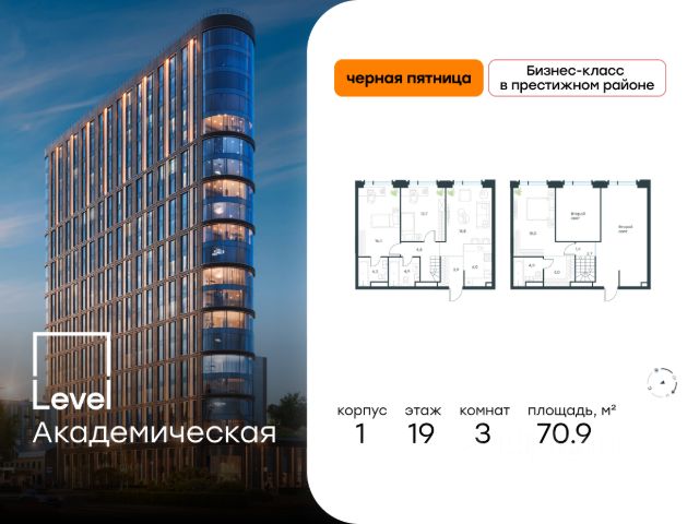 • ✓ В базе Циан 13 3-комнатных квартир в ЖК Level Академическая в Москве