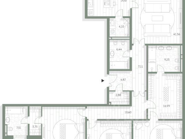 3-комнатная квартира общей площадью 193.96 м² в фамильном доме LUCE, расположенная на 4 этаже 7-этажного дома. LUCE — клубный дом в самом сердце исторической Москвы, в охранной зоне Кремля. Уникальный фамильный дом предлагает 43 квартиры, площадью от 79 до 384 м², спроектированные для тех, кто ценит приватность, пространство и изысканность. Дизайн и архитектура Архитектурная концепция клубного дома LUCE была разработана в известном итальянском бюро Archea Associati, основанном Марко Казамонти во Флоренции в 1988 году. Каждая деталь в LUCE продумана до мелочей, чтобы обеспечить резидентам максимальный комфорт и эстетическое удовольствие. Центральное гранд-лобби с потолками высотой 9 м — просторное помещение, объединяющее три входные группы, западное лобби с музыкальной гостиной и восточное с библиотекой. Благоустройство и инфраструктура Главное сокровище LUCE — секретный сад. Тихие тропинки вьются между тенистыми пространствами, создавая множество уютных уголков для отдыха и размышлений. Прогулка по тенистым аллеям сада становится своего рода медитацией, которая помогает восстановить силы и зарядиться энергией на новый день. Не покидая территорию своего дома, резиденты LUCE могут пользоваться эксклюзивными пространствами и сервисами: beauty-кабинет; зал для фитнеса и йоги,детская игровая комната, кабинет для индивидуальных занятий с репетитором, переговорная. Инженерные решения В каждой квартире предусмотрены: индивидуальные системы приточно-вытяжной вентиляции с очисткой воздуха и кондиционирования; система увлажнения воздуха; очистка и умягчение воды; система бесперебойного горячего водоснабжения; система "Умный дом": управление климатом, освещением, шторами, системой защиты от протечек, возможность установки дополнительных сервисов,а также, подогрев террас и балконов. Для всего дома предусмотрено усиление сигнала сотовой связи и wi-fi на территории всего дома, в том числе в саду и паркинге; бесшумные лифты с дизайнерской отделкой; подогрев покрытий входных групп; -вакуумное мусороудаление. Безопасность обеспечивают камеры круглосуточного видеонаблюдения, установленные по всему комплексу здания и на территории, а также автоматическая система распознавания госномера при въезде в паркинг. Паркинг Одноуровневый паркинг имеет увеличенные габариты машиномест. Здесь предусмотрены места для зарядных станций повышенной мощности, благодаря которым электрокар можно зарядить всего за 20 минут.