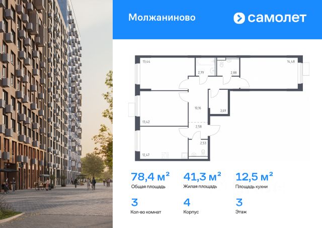 Строим кварталы для жизни с заботой о будущем. Предлагается 3-комнатная квартира комфорт-класса 80,62 кв.м в корпусе 5 на 3 этаже, в ЖК "Молжаниново" Квартира без отделки. Доступность опции "отделка" и возможность комплектации мебелью и декором уточняйте у застройщика. Приобрести квартиру возможно по специальным акциям от застройщика, с текущими условиями акций можно ознакомиться в блоке "Акций". Цена динамическая и может отличаться, уточняйте актуальность у застройщика. Жилой комплекс "Молжаниново" — это место, где каждый маршрут продуман так, чтобы вы проводили больше времени с близкими, а не в дороге. Ставьте паруса в канале имени Москвы, устраивайте пикники в Химкинском лесу или ищите редких птиц в Захарьинской пойме. Жилой комплекс сочетает в себе комфорт городской жизни с преимуществами природы. С одной стороны — московская регистрация, собственная инфраструктура, благоустроенные дворы с детскими площадками и зонами отдыха. С другой — ручей и пруд прямо на территории, а также много леса вокруг.