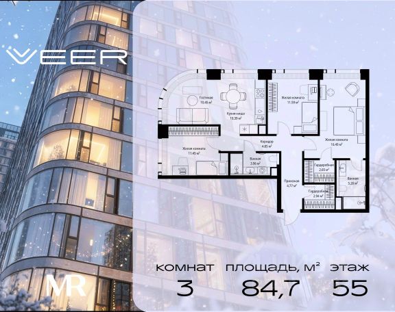 Прямая продажа от застройщика. Продаётся 3-комнатная квартира общей площадью 79.90 м² с предчистовой отделкой в ЖК VEER на 33-м этаже 59 этажного дома. Жилой комплекс бизнес-класса VEER от компании MR — это футуристичный мультиквартал, расположенный в престижной локации на западе Москвы. Благодаря переменной высоте башен — двух 22-этажных, 46-этажной и двух 59-этажных — возникает динамичность в силуэте комплекса, а его яркий образ вносит разноплановость в архитектурный пейзаж района. Расположение и транспортная доступность: • VEER удобно расположен в непосредственной близости от Кутузовского проспекта, обеспечивая быстрый доступ к центральным районам Москвы • Комплекс находится непосредственно напротив самого большого природного заказника в Москве - парка "Долина реки Сетунь", а за семь минут можно доехать до памятника садово-паркового искусства, Троекуровского леса. • Всего в 15 минутах - центр города, самая престижная бизнес-школа управления России "Сколково", дом творчества "Переделкино". • 18 минут пешком до м. "Давыдково" • Открытие новых станций метро в шаговой доступности в будущем Инфраструктура: Разнообразить свой день резиденты VEER смогут также проводя больше времени на свежем воздухе. Двор разделен на 4 зоны разных эмоций и действий, которые пересечены и соединены веерными прогулочными маршрутами: • Спортивная площадка устроена в глубине "Кленовой рощи" • В "Чайном домике" будет создан навес с утеплением для отдыха в любую погоду • Площадки для детей воплотятся в "Волшебный лес" с цветами, зеркалами и световым дизайном • "Центральная площадь" устроена у водного оазиса живописного пруда. Компания MR предлагает своим клиентам специальные условия приобретения квартир в рамках программ ипотечного кредитования от банков-партнеров.