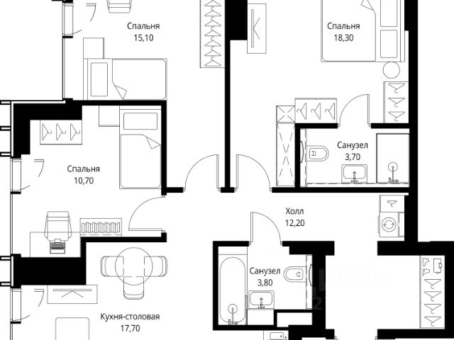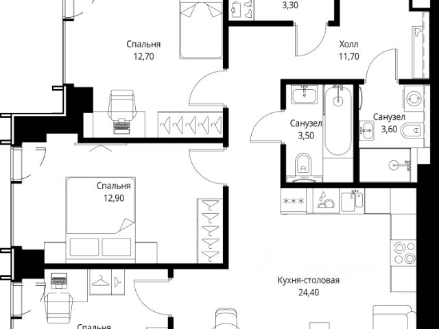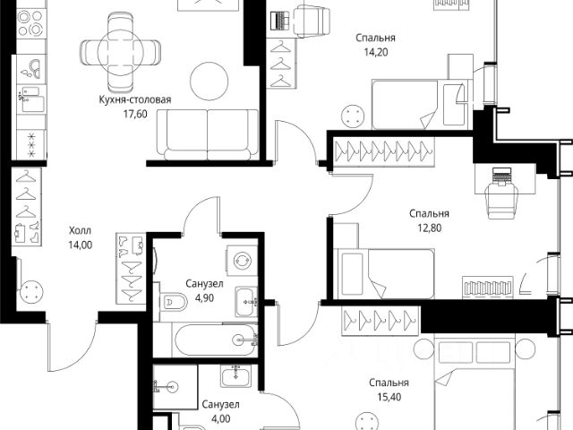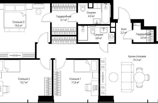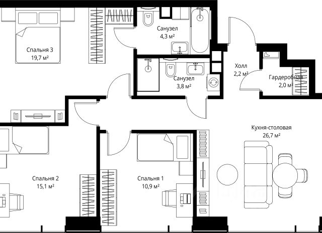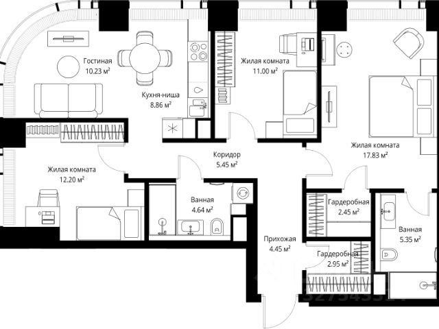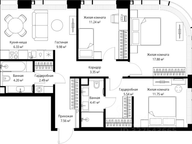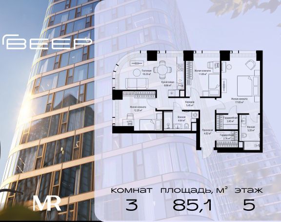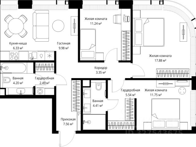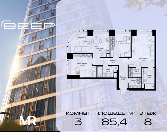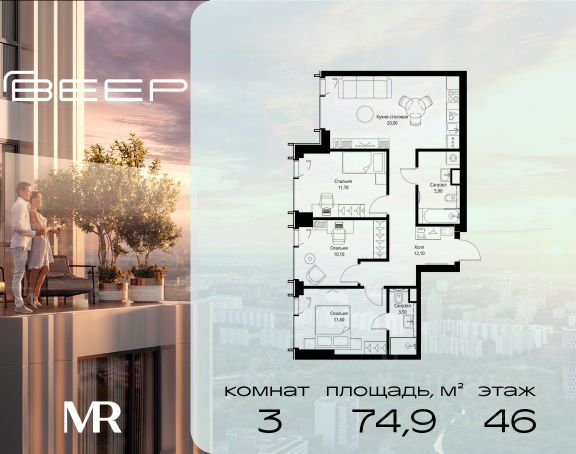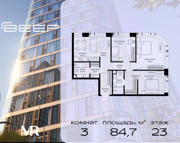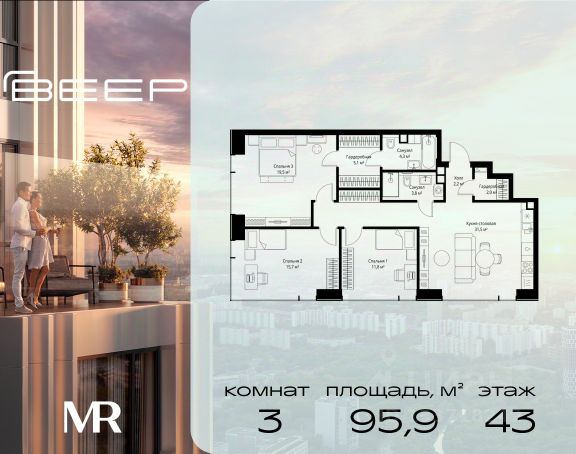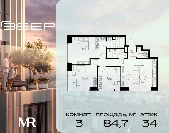 Старт продаж новой очереди! Продаётся 3-комнатная квартира общей площадью 85.02 м² без отделки в ЖК Веер на 2-м этаже 70 этажного дома. Веер.2 — вторая очередь футуристичного квартала бизнес-класса Веер. Это новая экосистема в престижном Западном округе Москвы, поражающая масштабностью внутренней инфраструктуры. ЖК находится всего в 5 минутах от Кутузовского проспекта и в 15 минутах от Сколково. Ансамбль из четырех стеклянных башен с доминантой в 237 метров разработан по принципу современного урбанизма и выражен в лаконичных объемах — параллелепипедах со сглаженными углами, которые придают зданиям утонченный вид. Расположение и транспортная доступность: • Образовательный комплекс в составе топовой школы, состоящий из двух зданий: основное на 1500 школьных и 450 дошкольных мест, отдельное здание детского сада на 300 мест. • Парк "Долина реки Сетунь" площадью более 700 гектаров • Рядом МГУ, МГИМО, РАНХиГС и Академия ФСБ • 15 минут по Кутузовскому проспекту до ужина в центре с видом на Москву-реку • 18 минут пешком до м. "Давыдково" • Открытие новых станций метро в шаговой доступности в будущем Инфраструктура: Двор в Веер.2 — это ассиметричные холмы, каменные "лабиринты", зеленые ковры и хвойные островки с единой живой экосистемой. Здесь есть все: • Павильон умиротворения Место отдыха под навесом в спокойной части двора, окруженное деревьями. • Активная тропа Тактильная дорога из камней разного диаметра для расслабляющих прогулок. • Бизнес-гарден Оборудованное пространство для работы на свежем воздухе со столом и встроенными розетками. • Детская площадка Двухуровневая площадка "Ботаника" с песочницей, переговорной трубой и горкой "Дружба". Компания MR предлагает своим клиентам специальные условия приобретения квартир в рамках программ ипотечного кредитования от банков-партнеров.