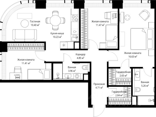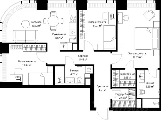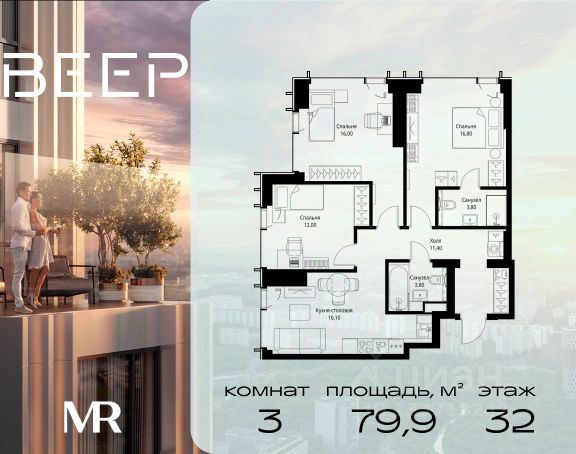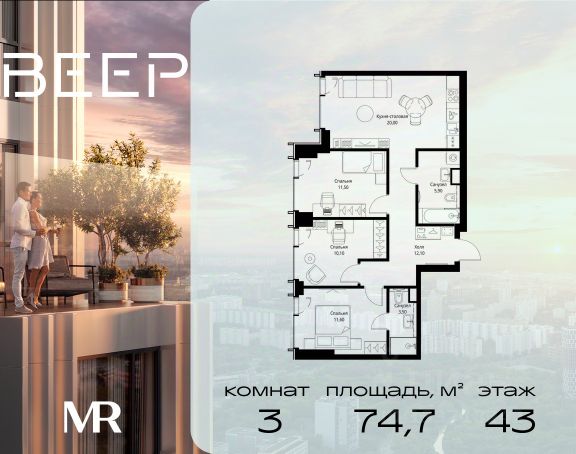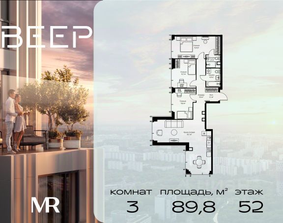 Прямая продажа от застройщика. Продаётся 3-комнатная квартира общей площадью 101.90 м² без отделки в ЖК Веер на 46-м этаже 59 этажного дома. ВЕЕР — это жилой квартал бизнес-класса в престижном ЗАО Москвы всего 5 минут до Кутузовского проспекта. 15 минут — до центра столицы, Переделкино или Сколково. Рядом — крупнейший природный заказник "Долина реки Сетунь", а в пешей доступности — новая проектируемая станция метро. Здесь всё необходимое для жизни находится в шаговой доступности: например, офисный и спортивный кластеры, государственная рейтинговая школа 1329 и детский сад, фитнес и ресторанный бульвар. • Концепция 15-минутного города ВЕЕР реализует идею "города в городе": внутри квартала появятся офисный и спортивный кластеры, своя государственная рейтинговая школа 1329 и детский сад, центры творчества, ресторанный бульвар, фитнес и спа-центр с 25-метровым бассейном. Здесь будет всё — от салонов красоты и банков до медицинских центров и фуд-холла. Для активного отдыха — 25-километровый беговой маршрут, школа единоборств и йога-студия прямо в комплексе. • Архитектура и планировки Первая очередь ВЕЕР.1 — это 5 разновысотных башен, объединённых стилобатом с благоустроенным закрытым двором без машин. Авторская архитектура от бюро СПИЧ, известного по таким знаковым проектам как новое здание Третьяковской галереи в Москве и Музей архитектурного рисунка в Берлине, создаёт динамичный силуэт квартала. Более 200 типов продуманных планировок: квартиры с видовыми террасами, мастер-спальнями, панорамными окнами и даже смотровой площадкой на крыше. Малоэтажные уютные секции с 25 квартирами на этаже и с эксплуатируемой кровлей подойдут тем, кто ищет уединения. Предчистовая отделка white box по стандартам MR обеспечивает быстрое заселение и тишину в корпусах. • Элегантные лобби и зеленые дворы В каждом лобби — дизайнерская отделка от Jaime Beriestain Studio, премиальные материалы, уютные зоны для общения, коворкинги, студии йоги, лапомойки и просторные колясочные. В закрытых дворах царит гармония природы и жизни: всесезонный чайный домик, кленовая роща, площадь с прудом и беседкой, амфитеатром и библиотекой. Для детей — образовательные игровые площадки "Археология" и "Ботаника". • Спорт и досуг Трёхуровневый фитнес и СПА-центр на 4000 кв.м с 25-метровым бассейном под прозрачной крышей, кардио- и силовыми залами, а также пространством для групповых занятий — всё это прямо в доме. • Инженерия и безопасность ВЕЕР оснащён умной инженерией: скоростные лифты премиум-класса Sword, современная система вентиляции, двухуровневый паркинг на 695 машино-мест с прямым доступом из лобби, зарядками для электромобилей, кладовыми и велопарковками. Отдельный вход для курьеров и современные системы охраны обеспечивают абсолютную безопасность жителей.