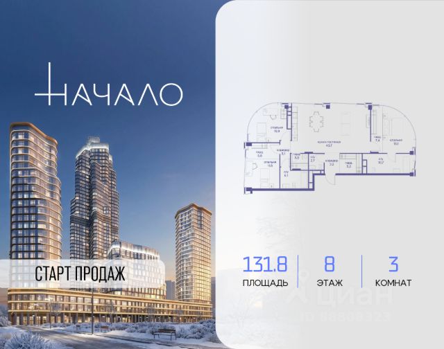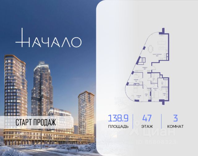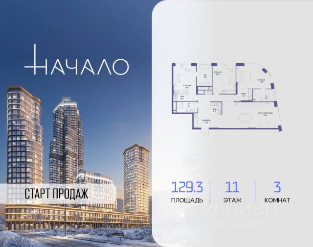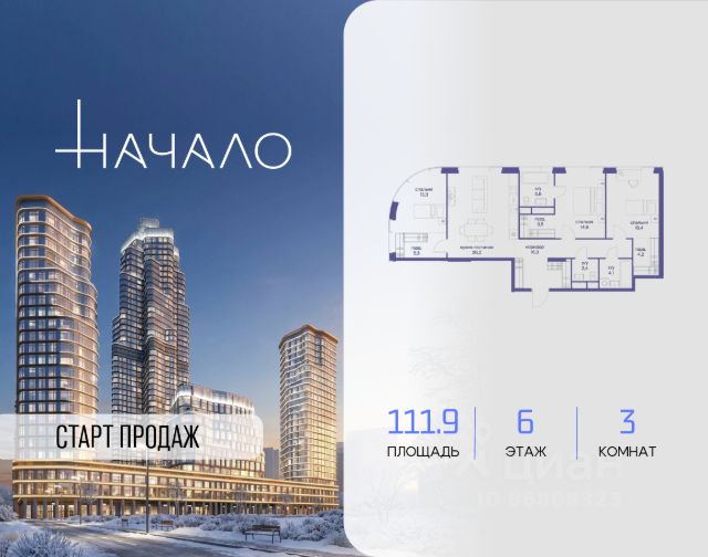 В престижном районе Пресня, на перекрестке делового и исторического центров Москвы, продается трехкомнатная квартира площадью 113.80 кв. м без отделки. Квартира находится на 4 этаже 11-этажного дома, в новом элитном жилом комплексе "Начало" от девелопера "Донстрой". Реализация проекта запланирована на 1 квартал 2030 года. Начало - футуристический дом на Пресне в нескольких минутах от Сити и Садового кольца. Проект по-настоящему космического масштаба, где есть все, чтобы раскрыть себя и свои возможности. Расположение Пресня - один из самых престижных районов Москвы. Жить здесь - значит стать частью истории столицы, быть в эпицентре деловой активности города и ощущать, как сама Вселенная вращается вокруг вас. - 5 минут пешком до Красногвардейских прудов; - 15 минут пешком до ст. метро "Улица 1905 года"; - 6 минут на автомобиле до Садового кольца и небоскрёбов "Москва-Сити"; - 12 минут на автомобиле до Кремля. Архитектура как путешествие Как росток пробивает скалу, как растет кристалл, как ракета устремляется ввысь - так формируется архитектурный образ этого дома. Точно выверенный баланс между футуристичными формами и функциональным содержанием дома выводит жизнь в нем на новую орбиту. Стеклянные фасады отражают небо и город, превращая здание в зеркало для окружающего ландшафта. Двор между небом и землёй Просторная территория двора с тремя тематическими зонами отдыха: "Млечный путь" - для детских игр и развлечений; "Космический сад" - для тихого отдыха и релакса; "Метеоритный сад" - для любителей спорта. Открытый променад - сквозной маршрут на крыше стилобата с зонами отдыха, занятий спортом, детских игр и совместной работы. Все площадки плавно связаны между собой прогулочной дорожкой. Теплая кольцевая галерея и мосты над пространством двора - все корпуса "стыкуются", точно модули космической станции. Главный центр притяжения В составе проекта возводится собственный комьюнити-центр, где создана идеальная атмосфера для любых начинаний: - Детский клуб для будущих покорителей Вселенной; - Коворкинги для решения задач планетарного и космического масштабов; - Переговорные для судьбоносных и просто важных встреч; - Лаунжи с атмосферой дзена и релакса; - Библиотека для спокойного чтения; - Кинотеатр для классики и блокбастеров. Территория комфорта и приватности Всё нужное рядом: - Современный образовательный центр со школой и детским садом - для ваших детей; - Фитнес-центр с бассейном - для релакса и борьбы со стрессом; - Ресторанная улица: кафе, рестораны, летние террасы - для деловых обедов и семейных ужинов; - Пекарня и минимаркет в доме - для ежедневных покупок; - Сквер у дома - для неспешных прогулок и спокойного отдыха; - Никаких такси на улице. Машина заберет вас прямо в подземном паркинге вашего корпуса.