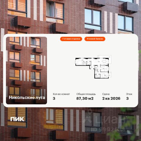• ✓ В базе Циан 11 3-комнатных квартир в ЖК Никольские луга в Москве