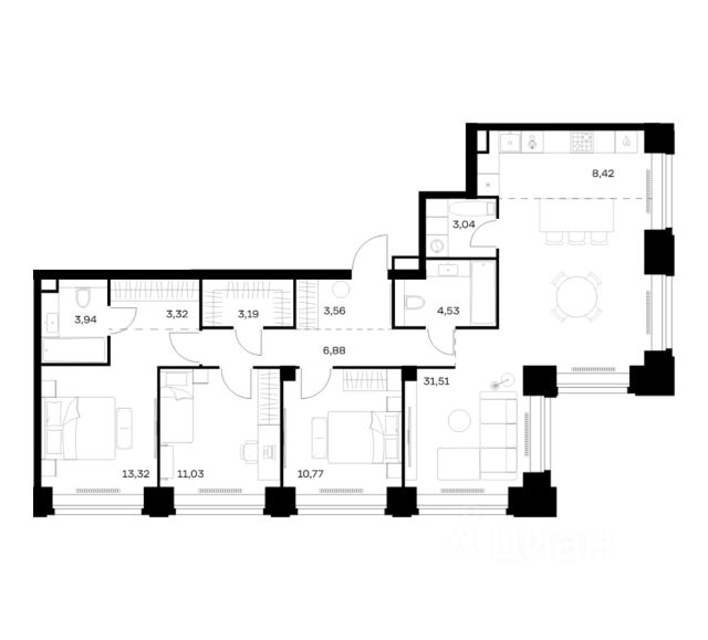 Арт. 100769978 Продаётся евро 4-комнатная квартира в строящемся доме (Корпус 3), срок сдачи: IV-кв. 2027, общей площадью 80,77 кв.м., на 11 этаже. NOVA - первый проект в коллекции samolet select, который сочетает в себе образец практичной премиальности и гармоничного соседства с природой. Архитектура от голландского бюро De Architekten Cie. Архитектура, которая гармонично вписывается в современный облик города и никогда не устареет, это дом на века. 12 минут до комплекса "Москва-Сити", 10 минут до Садового кольца, МГУ и парка Воробьевы Горы. Ближайшая станции метро Минская находится в 16 минут ходьбы.