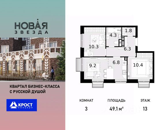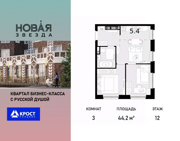 Жилой комплекс Новая Звезда от концерна КРОСТ" предлагает высокий уровень комфорта с премиальной отделкой, подземным паркингом и всей необходимой инфраструктурой в шаговой доступности. Территория закрыта, вьезд через шлагбаум, Закрытый двор с ландшафтным дизайном, архитектурными дизайнерскими решениями, спортивные зоны,теннисный корт, каскад детских площадок, каток, футбольное поле, внутри дворовой зоны- детский сад и современная новая школа.