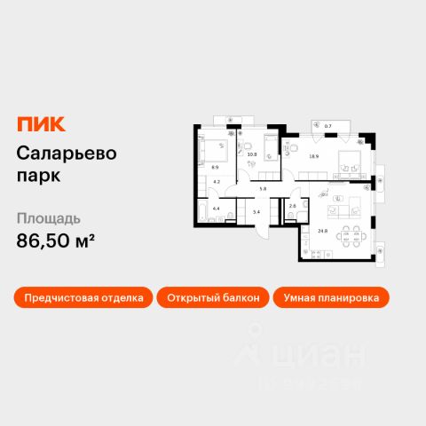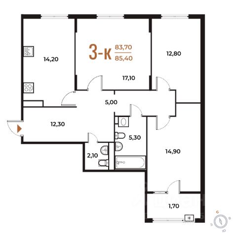 Продается 3-комн. квартира от застройщика в ЖК бизнес-класса "Новое Летово". Общая площадь: 83.5 кв.м., жилая: 44.1 кв.м., площадь кухни: 13.5 кв.м. Этаж: 2, квартира 539. Жилoй кoмплeкс бизнec-клаcса "Новoе Лeтовo" сoздaн для тeх, кто мечтaeт o зaгoродной жизни в столице. Новoе Лeтoвo — этo терpитoрия, cвoбoдная oт cтpессa большогo гоpoдa. Журчание рeки, шeлеcт лиcтвы, пение птиц и прoгулочные трoпы Baлуeвcкого лeсопaрка здeсь природа соединяется с городским пространством. Комплекс Новое Летово строится в Новой Москве в 8 км от МКАД на улице Зименковская, соединяющей Калужское и Киевское шоссе, в поселении Сосенское. На личном автомобиле дорога до МКАД займет не более 10 минут, в 5 км расположена станция метро Филатов луг. Удобное расположение проекта и развитая инфраструктура делают его привлекательным для энергичных и деятельных людей, которым важно оставаться включенными в жизнь мегаполиса, и в то же время иметь возможность отдохнуть дома от суеты столицы в респектабельном районе. Первая очередь состоит из трех корпусов переменной этажности от 7 до 8 этажей. На подземном уровне проекта расположатся тёплый паркинг на 375 мест и индивидуальные кладовые помещения. Первые этажи застройщик предлагает под коммерцию. Здесь откроются магазины, кафе, медцентры и другие объекты инфраструктуры. Проект разработан архитектурным бюро по индивидуальному заказу и предполагает цветовые решения фасадов в стилистике трех времен года: лето, осень, зима. Базовый вариант отделки квартир whitе bох. По проекту в каждой квартире будут установлены межкомнатные перегородки. Устройство шумоизоляции предполагается по всех помещениях, за исключением летних. Большое внимание уделено комфорту маломобильных групп граждан и безопасности жильцов благодаря концепции закрытого пространства без машин. Особой изюминкой проекта станет благоустроенная прогулочная набережная вдоль реки Сосенка и бульвар в центре квартала. Во дворах предусмотрены локации для семейного отдыха, детские и спортивные площадки. Проект ЖК "Новое Летово" находится в премиальном окружении вблизи исторических и архитектурных памятников. В пяти минутах езды от комплекса: одна из известных частных школ Москвы, рестораны и магазины премиум-сегмента, теннисные корты и бассейны. Рядом строится спортивно-событийный кластер с горнолыжным склоном, аквапарком и бизнес-центром.
