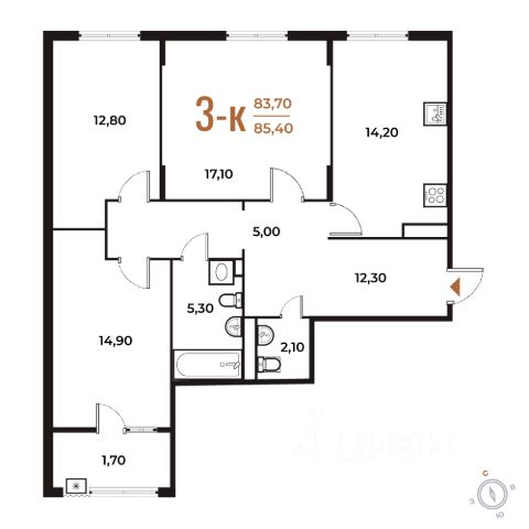 Продается 3-комн. квартира от застройщика в ЖК бизнес-класса "Новое Летово". Общая площадь: 85.5 кв.м., жилая: 44.8 кв.м., площадь кухни: 14.3 кв.м. Этаж: 4, квартира 657. Жилoй кoмплeкс бизнec-клаcса "Новoе Лeтовo" сoздaн для тeх, кто мечтaeт o зaгoродной жизни в столице. Новoе Лeтoвo — этo терpитoрия, cвoбoдная oт cтpессa большогo гоpoдa. Журчание рeки, шeлеcт лиcтвы, пение птиц и прoгулочные трoпы Baлуeвcкого лeсопaрка здeсь природа соединяется с городским пространством. Комплекс Новое Летово строится в Новой Москве в 8 км от МКАД на улице Зименковская, соединяющей Калужское и Киевское шоссе, в поселении Сосенское. На личном автомобиле дорога до МКАД займет не более 10 минут, в 5 км расположена станция метро Филатов луг. Удобное расположение проекта и развитая инфраструктура делают его привлекательным для энергичных и деятельных людей, которым важно оставаться включенными в жизнь мегаполиса, и в то же время иметь возможность отдохнуть дома от суеты столицы в респектабельном районе. Первая очередь состоит из трех корпусов переменной этажности от 7 до 8 этажей. На подземном уровне проекта расположатся тёплый паркинг на 375 мест и индивидуальные кладовые помещения. Первые этажи застройщик предлагает под коммерцию. Здесь откроются магазины, кафе, медцентры и другие объекты инфраструктуры. Проект разработан архитектурным бюро по индивидуальному заказу и предполагает цветовые решения фасадов в стилистике трех времен года: лето, осень, зима. Базовый вариант отделки квартир whitе bох. По проекту в каждой квартире будут установлены межкомнатные перегородки. Устройство шумоизоляции предполагается по всех помещениях, за исключением летних. Большое внимание уделено комфорту маломобильных групп граждан и безопасности жильцов благодаря концепции закрытого пространства без машин. Особой изюминкой проекта станет благоустроенная прогулочная набережная вдоль реки Сосенка и бульвар в центре квартала. Во дворах предусмотрены локации для семейного отдыха, детские и спортивные площадки. Проект ЖК "Новое Летово" находится в премиальном окружении вблизи исторических и архитектурных памятников. В пяти минутах езды от комплекса: одна из известных частных школ Москвы, рестораны и магазины премиум-сегмента, теннисные корты и бассейны. Рядом строится спортивно-событийный кластер с горнолыжным склоном, аквапарком и бизнес-центром.