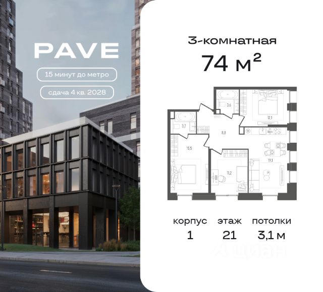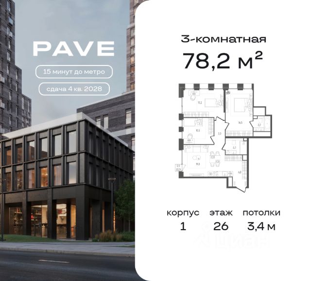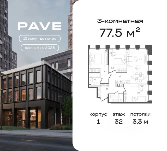 Прямая продажа от застройщика! Продается 3-к. квартира квартира номер 12 общей площадью 77.3 кв.м. на 3-м этаже 33 этажного дома, 1. Без отделки. Проект бизнес-класса Pave от девелопера FORMA. Метро Павелецкая в пешей доступности, удобные выезды на ТТК и Садовое кольцо. Архитектура от бюро MAYAK. Благоустройство дворов — Magly. Приватный внутренний двор с водной гладью и местами для отдыха, коворкинг под открытым небом. Детские площадки с уникальным игровым оборудованием, спортивные площадки с зоной воркаут. Квартиры с панорамным джамбо остеклением, французскими балконами, террасами, мастер-спальнями и гардеробными. Высота потолков от 3,1 м. На последнем этаже пентхаусы с каминами и высотой потолков 3,6 м. Дизайнерское гранд-лобби для резидентов с фит-рум, коворкингом и общественной гостиной. Двухуровневый подземный паркинг и келлеры.