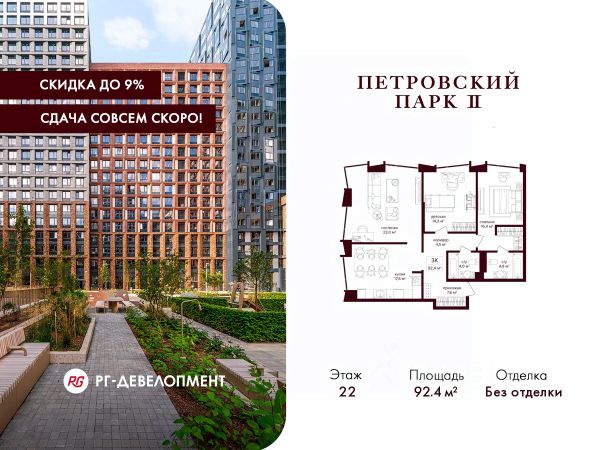 • ✓ В базе Циан 39 3-комнатных квартир в ЖК Петровский парк II в Москве