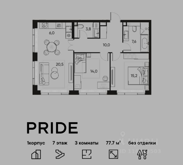 В премиальном жилом квартале Прайд продается 3-комнатная квартира в 1 корпусе, на 17 этаже, в секции 6. Её общая площадь составляет 81.3 м². Пространство включает 2 уютные спальни 11,1 м², 12,1 м², просторную кухню-гостиную 33 м² и ванную комнату 6,3 м². Ключи в 2026 году. Удобная локация: Жилой квартал расположен в 15 минутах от Цветного бульвара в историческом районе Марьина Роща. До любой точки города быстро и удобно добраться, как на общественном транспорте, так и на авто — комплекс находится всего в 3 минутах от ТТК и в пешей доступности от метро. Яркая архитектура с переменной высотностью от 7 до 22 этажей от именитого бюро APEX формирует запоминающийся облик проекта. Развитая инфраструктура: Территория квартала делится на несколько отдельных частей: открытый просторный бульвар 3500 м² для прогулок и два внутренних камерных двора. Внутри предусмотрены площадки для спорта, места для игр и тихие пространства для отдыха и неторопливого общения. Коммерческие и торговые помещения спроектированы на уровне первых этажей: супермаркеты, магазины, рестораны и кофейни, барбершоп, спа-салон и другие сервисные точки. Образовательный центр со школой на 257 учеников и детским садом на 112 мест на собственной территории квартал - идеальное решение для семей с детьми. Таким образом, внутренняя инфраструктура Прайд обеспечит все базовые потребности будущих жителей. Благоустроенная территория: Ландшафтный дизайн с многоуровневым и замысловатым озеленением будет радовать жителей на протяжении всех сезонов — богатая флора дворов включает в себя несколько десятков видов растений. Лобби как в лучших отелях мира: На первых этажах резидентов и гостей встретят лобби с авторским дизайном от Sundukovy Sisters, бюро знаменито своими работами для отелей и ресторанов премиум-класса во всем мире. Надежный застройщик: Девелопер PIONEER — компания с 24-летней историей. В портфеле — 40 проектов жилой, коммерческой, социальной и многофункциональной недвижимости в Москве и Санкт-Петербурге. С 2001 года было реализовано 2,9 млн м². В настоящее время 1,6 млн м² находятся в стадии проектирования и строительства. Среди новых знаковых проектов девелопера — премиальные жилые кварталы и деловые объекты класса A. Квартира