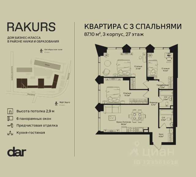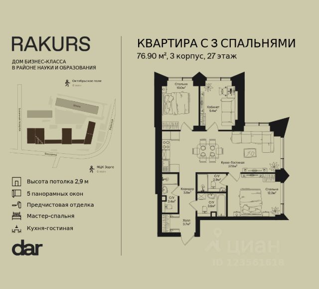 • ✓ В базе Циан 24 3-комнатных квартир в ЖК Rakurs в Москве