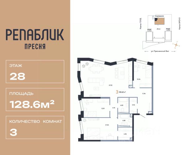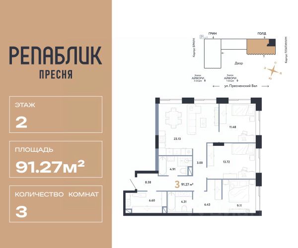 Рассрочка 0% с первым взносом от 20%, ипотека с субсидией или наличные. Подберём способ оплаты индивидуально. Продается 4комнатная квартира на 7 этаже от застройщика Страна Девелопмент. Площадь квартиры 91.35 кв. м. Дизайн-квартал "Republic" — новый проект премиум-класса в Москве от федерального застройщика "Страна Девелопмент". ЦАО, Пресня, 7 мин. от метро "Белорусская". 10 жилых башен и 4 восстановленных здания локомотивного депо образуют уникальное пространство. "Republic" — место, где вы ощутите гармонию истории и современности. За 12 мин. вы сможете дойти до Московского зоопарка, за 10 мин. на авто доехать до Патриарших прудов и Белого дома. Преимущества • Благоустройство. SPA-комплекс с бассейном и термами, гастрономический, учебный и шопинг-центры, приватный бульвар и яркие арт-пространства — для жителей предусмотрены все элементы премиального комфорта. • Панорама на центр. Наслаждайтесь видами ЦАО каждый день: панорама на историческую Пресню и башни Москва-Сити — из своей квартиры или с приватной террасы на крыше. • Концептуальное лобби в каждой башне. С общей террасой на кровле, с библиотекой, коворкингом и фитнес-рум. Стойка консьержа перетекающая в бар и др. • Современные форматы квартир. Свободные планировки, с террасой или балконом, с возможностью установки камина, от 1-комнатных до пентхаусов. Отделка Квартиры сдаются без отделки или в формате White box. При White box уже выполнены все шумные и грязные работы: произведена разводка электричества с подрозетниками, установлены откосы из гипсокартона, устроена стяжка пола с шумоизоляцией и др. Способы покупки Сотрудники "Страна Девелопмент" будут сопровождать вас на каждом этапе сделки, помогут получить одобрение по ипотеке или снизить ежемесячный платеж. - ипотека (стандартная/с субсидией/траншевая) - рассрочка (с ПВ от 20%) - с использованием материнского капитала - оплата наличными