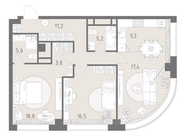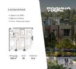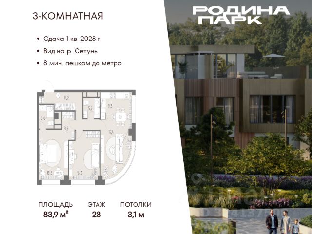 В жилом кластере Родина Парк рядом с природным заказником Долина реки Сетунь продаётся 3-комнатная квартира. Продуманная европланировка, которую легко зонировать под ваши запросы. Потолки от 3,1 м. "Родина Парк" — премиальный семейный кластер с образовательным медиакластером, строящийся на западе Москвы в окружении природного заповедника "Долина реки Сетуни". • Скидки недели на избранный пул лотов • Рассрочка 0% на выгодных условиях до 2 лет • Семейная ипотека, подбор комбо-вариантов ипотечных программ прямо в офисе продаж • Скидки 8% при 100% оплате или ипотеке. ЛОКАЦИЯ: 8 минут пешком до станции БКЛ "Давыдково". 12 минут на автомобиле до Нового Арбата. Удобные выезды на Кутузовский проспект, Аминьевское шоссе. ИНФРАСТРУКТУРА И СЕРВИСЫ ДЛЯ ЖИТЕЛЕЙ - Уникальная экосистема для развития, здоровья и творчества на территории 3,5 Га: - Первый в России образовательный медиакластер (с участием Русской медиагруппы) для творческого развития детей и взрослых с возможностью получить востребованную профессию в сфере шоу-бизнеса. - Инфраструктура и сервисы для семей с детьми на территории жилого кластера (частный детский сад, детские игровые пространства, творческие студии для занятий музыкой и танцами, безопасная и комфортная среда для детей и родителей), событийно-культурная площадка для проведения семейного досуга); - Здоровая среда (биохакинг-центр, фитнес-зал и спортивная инфраструктура во дворе, медитационные пространства, инженерные решения для освещения, свежего воздуха и очистки воды, сервисы красоты и поддержания активного долголетия); - Сервисы заботы (инфраструктура комфорта - подземный паркинг, кладовые, колясочные, консьерж- сервис, умный дом, мобильное приложение, профессиональная управляющая компания, сервисы охраны и обеспечение абсолютной безопасности) - Комьюнити резидентов (социальные пространства для дружеского и делового общения - летний атриум с уличным кинотеатром, зоны отдыха, кафе и рестораны, комьюнити-сервис с культурно- событийной программой в медиакластере); - Модуль благосостояния (комфортные пространства для работы и саморазвития - коворкинги и переговорные). ИНФРАСТРУКТУРА РАЙОНА: Насыщенная образовательная среда: филиалы МГИМО, МГУ, МГТУ, Сколково. Топовые школы: 6 лучших частных школ Москвы и области (Forbes) в 10 минутах езды. Природное окружение для пеших прогулок, спорта и отдыха. "Родина Парк" — это место, где растут и дети, и ваши возможности. Экосистема, где всё подчинено развитию — физически, профессионально, творчески.