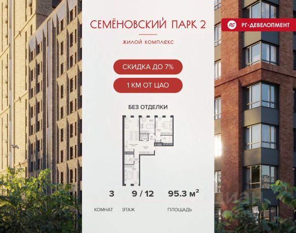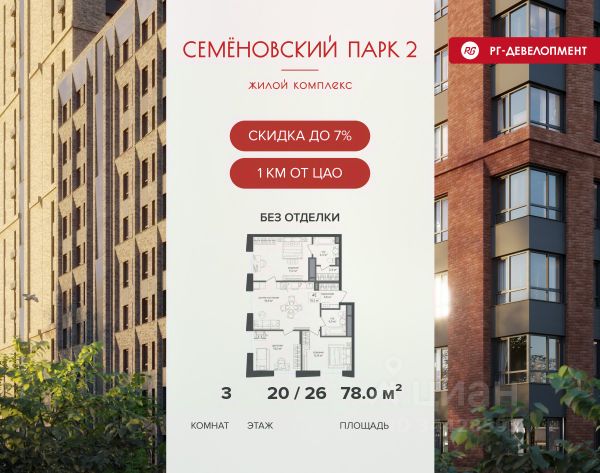Ипотека для каждого! Полная стоимость кредита от 12,380% до 18,537%. Ставка от 0,11% в АО "Альфа-Банк", ген. лицензия ЦБ РФ 1326 от 16.01.2015. Ставка фиксируется на первые 12 месяцев, далее полная стоимость кредита от 22,022% до 24,599% ставка 21,59%. Первоначальный взнос — от 20,1% от стоимости квартиры. Срок кредитования — от 4 до 30 лет. Ипотека на весь срок! Полная стоимость кредита от 23,396% до 26,058% со ставкой 14,5%! Первоначальный взнос —от 20,01% от стоимости квартиры. Срок кредитования — от 3 до 30 лет. АО "Банк ДОМ.РФ" универсальная лицензия Банка России 2312 от 19.12.2018. Скидка 7% при покупке квартиры! Цена указана с учетом максимального размера скидки. Продается 3-к квартира 79,9 кв.м. в ЖК "Семеновский парк 2" на 16-м этаже 26 этажного дома. Компания "РГ-Девелопмент" предоставляет скидку на квартиры в жилом комплексе. Акция действительна до 31.03.2026 включительно. Чтобы воспользоваться предложением, необходимо подписать договор на приобретение недвижимости до 31.03.2026 включительно. Компания "РГ-Девелопмент" вошла в ТОП-10 девелоперов по объёму введённого жилья в "Старой Москве" по итогам 2025 года. Прямая продажа от застройщика! Квартиры без отделки. Срок сдачи корпуса - 1 кв. 2026 г., корпус сдан. Выдача ключей. ЖК "Семеновский парк 2" - это идеальное место для того, чтобы стать вашим домом. Проект расположен в исторической части Москвы вблизи Измайловского лесопарка, в 1 км от ЦАО. 4 станции метро отделяют вас от Красной площади и 15 минут на автомобиле - от Садового кольца.